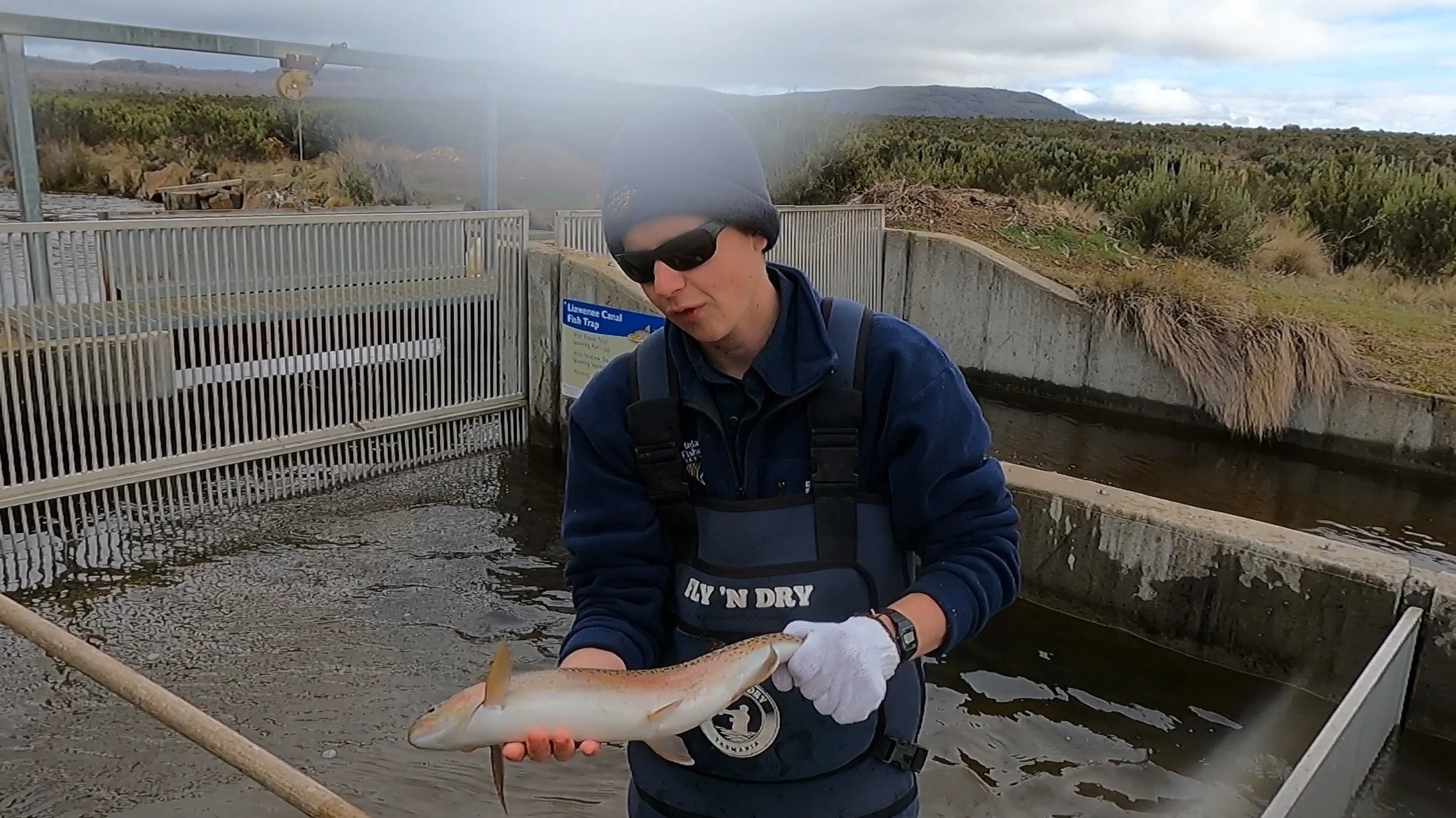 My day with Jo and Steve started with a visit to Liawenee, not only the coldest weather station in the country, but also the base for Tasmania’s Inland Fisheries’ trout spawning complex. Being the middle of October it was the rainbow trout that were on show. The fish were lining up ready to do their thing in the spawning canals that the IFS has created in recent years. It was a great taster for the Starlings before a day of fishing.